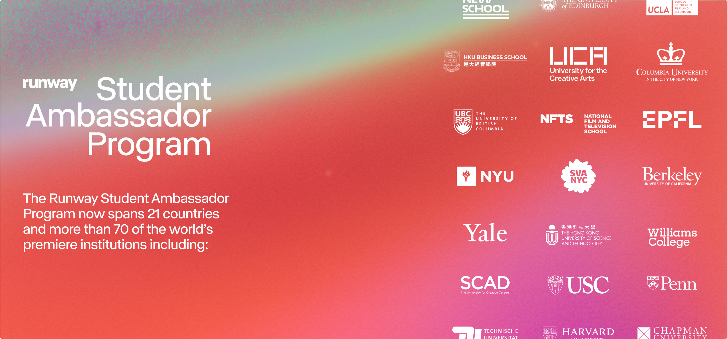 The program provides a select group of students who use Runway’s tools and are interested in championing generative AI at their schools greater access to Runway resources.
