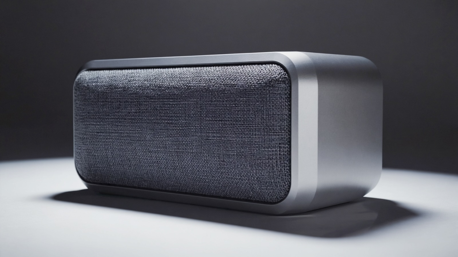 Example use: "Minimalist wireless speaker concept, brushed aluminum body, fabric grill, compact design, studio product photography"