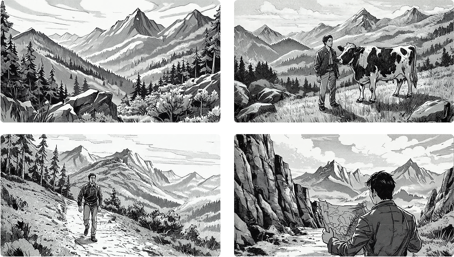 Build out entire storyboards in minutes versus days using a single style reference and text prompts.